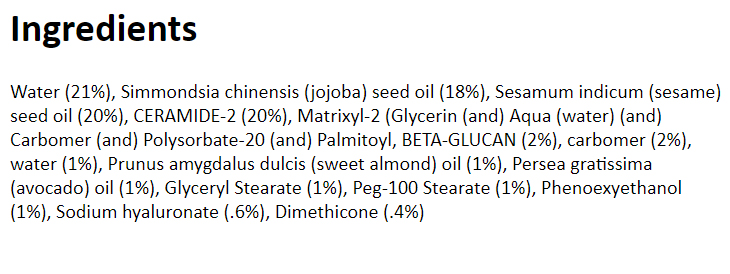 Ingredients For Face Cream - 15ml (1 Bottle)